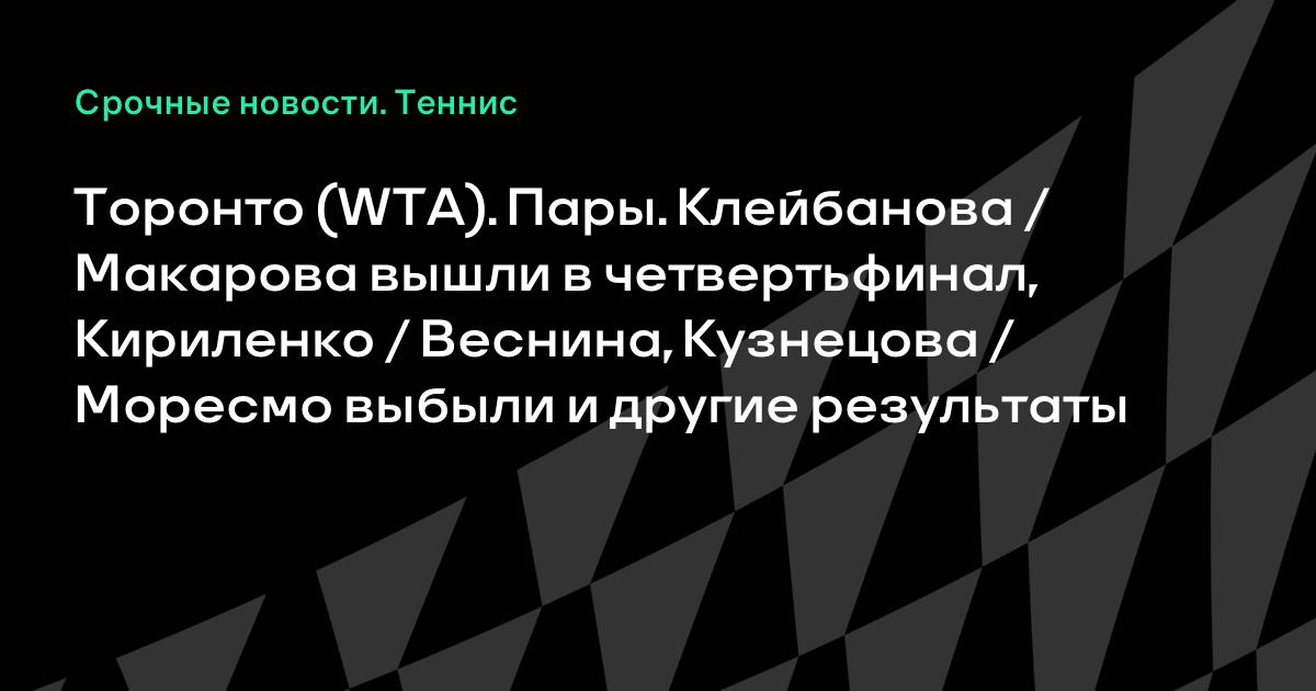 Торонто (WTA). Пары. Клейбанова / Макарова вышли в четвертьфинал, Кириленко / Веснина, Кузнецова / Моресмо выбыли и другие результаты