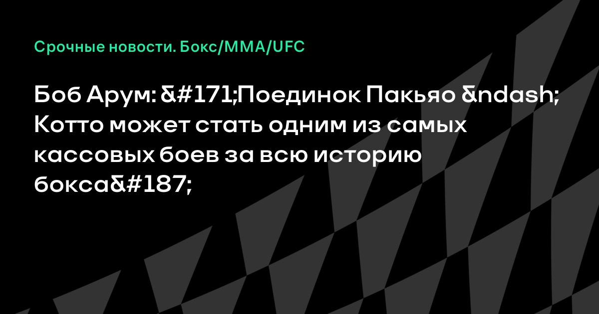 «Сегодня можно с уверенностью говорить о том, что поединок Мэнни Пакьяо Мигель Котто может стать одним из самых кассовых боев за всю историю бокса. Давно уже не наблюдалось такой активности и интереса к бою у любителей бокса. Уверен, все получат огромное удовольствие от того, что увидят на ринге 14 ноября», цитирует Боба Арума Boxingscene.com.