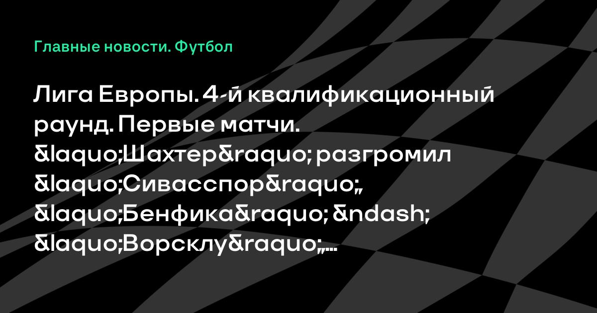Лига Европы. 4-й квалификационный раунд. Первые матчи. «Шахтер» разгромил «Сивасспор», «Бенфика» – «Ворсклу», «Кошице» и «Рома» сыграли вничью и другие матчи