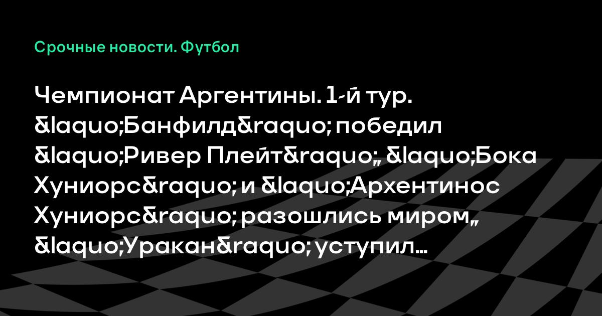 Чемпионат Аргентины. 1-й тур. «Банфилд» победил «Ривер Плейт», «Бока Хуниорс» и «Архентинос Хуниорс» разошлись миром,, «Уракан» уступил «Ланусу» и другие результаты