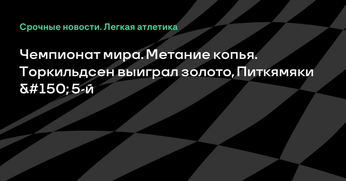 Чемпионат мира. Метание копья. Торкильдсен выиграл золото, Питкямяки  5-й