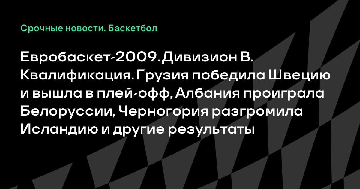 Евробаскет-2009. Дивизион В. Квалификация. Грузия победила Швецию и вышла в плей-офф, Албания проиграла Белоруссии, Черногория разгромила Исландию и другие результаты