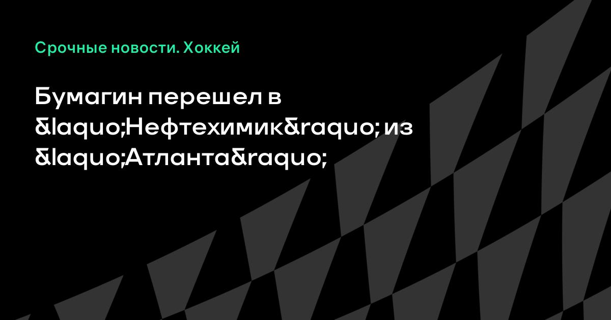 Нападающий «Атланта» Александр Бумагин перешел в «Нефтехимик». 22-летний форвард в прошлом сезоне провел 40 матчей, в которых набрал 11 (4+7) очков. В подмосковном клубе он выступал с 2007 года.