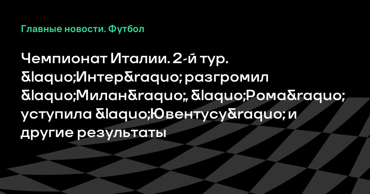 Чемпионат Италии. 2-й тур. «Интер» разгромил «Милан», «Рома» уступила «Ювентусу» и другие результаты