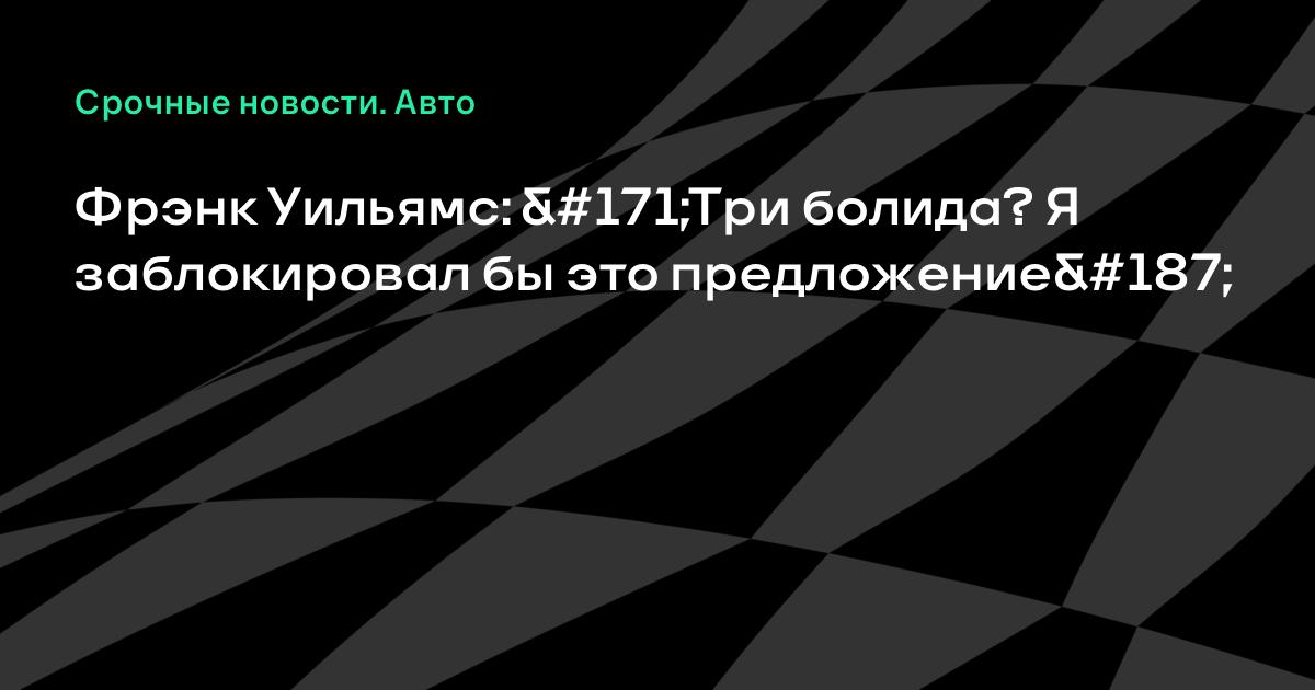 Фрэнк Уильямс: «Три болида? Я заблокировал бы это предложение»