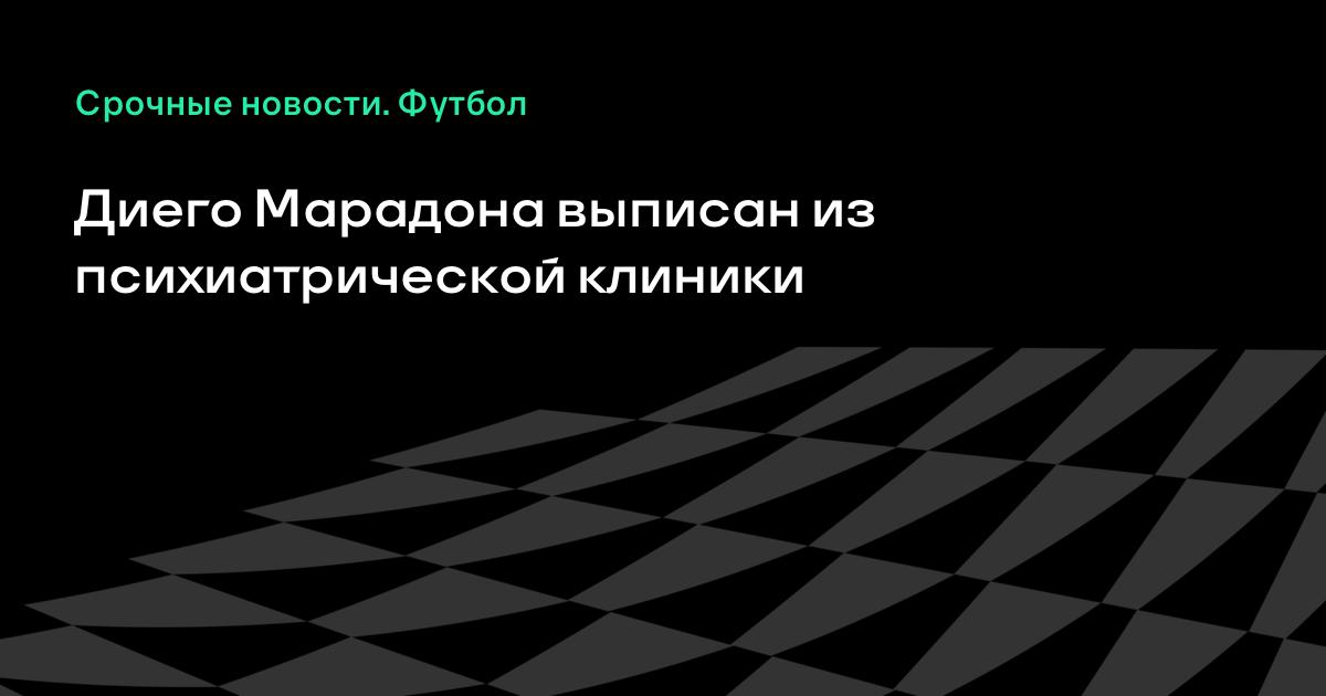 Легенда мирового футбола Диего Марадона выписан из психиатрической клиники, где он проходил курс лечения от алкогольной зависимости, сообщает Reuters. Лечащий доктор Диего сообщил, что Марадона идет на поправку, но продолжит курс, уже дома. Напоминаем, что в марте этого года великий аргентинец был госпитализирован с алкогольным циррозом печени.
