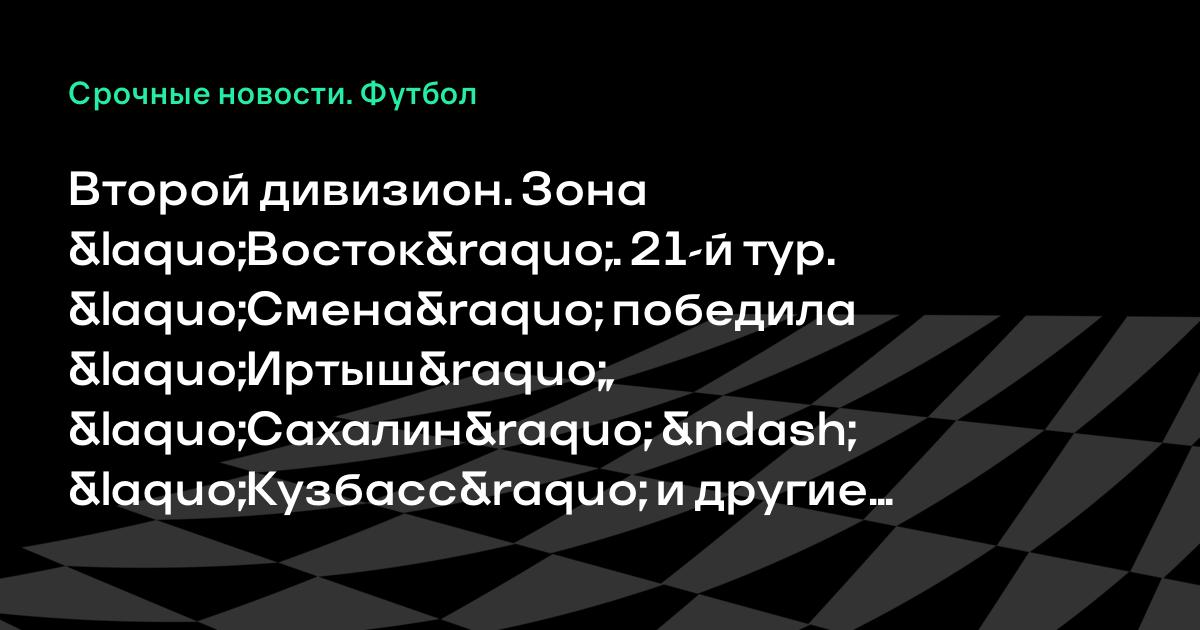 Второй дивизион. Зона «Восток». 21-й тур. «Смена» победила «Иртыш», «Сахалин» – «Кузбасс» и другие результаты
