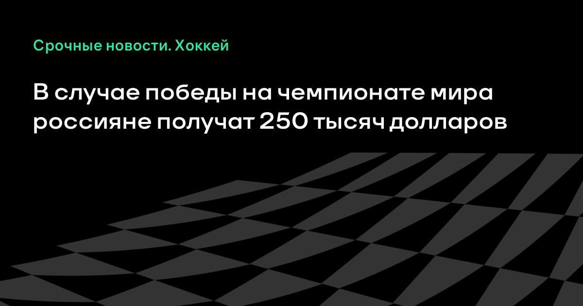 В случае победы на чемпионате мира россияне получат 250 тысяч долларов