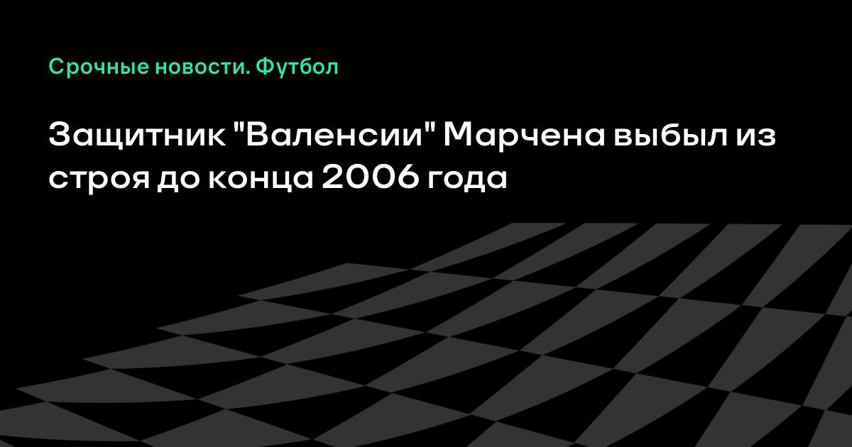 Защитник "Валенсии" Карлос Марчена повредил крестообразные связки левого колена и, судя по всему, пропустит весь групповой этап Лиги чемпионов. Как сообщает официальный сайт УЕФА, футболист сборной Испании был заменен на 19-й минуте воскресного поединка с "Хетафе" (2:0). Ожидается, что 27-летний Марчена будет восстанавливаться как минимум три месяца - стало быть, левый защитник вернется в строй лишь в начале 2007 года.