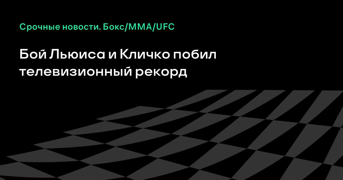 Субботний бой за звание чемпиона мира среди тяжеловесов между британцем Ленноксом Льюисом и украинцем Виталием Кличко собрал рекордную аудиторию американского телеканала "Эйч-Би-Оу Спортс" за последние шесть лет. Свидетелями поединка стали 4,6 млн зрителей - рейтинг составил 13,4. По словам президента канала Росса Гринберга, это доказывает особую популярность соперничества лучших тяжеловесов мира. Сразу же после поединка было принято решение повторить трансляцию во вторник. Последним "рекордсменом" был поединок между Джорджем Формэном и Шэнноном Бриггзом 22 ноября 1997 года, рейтинг которого был равен 14,9.