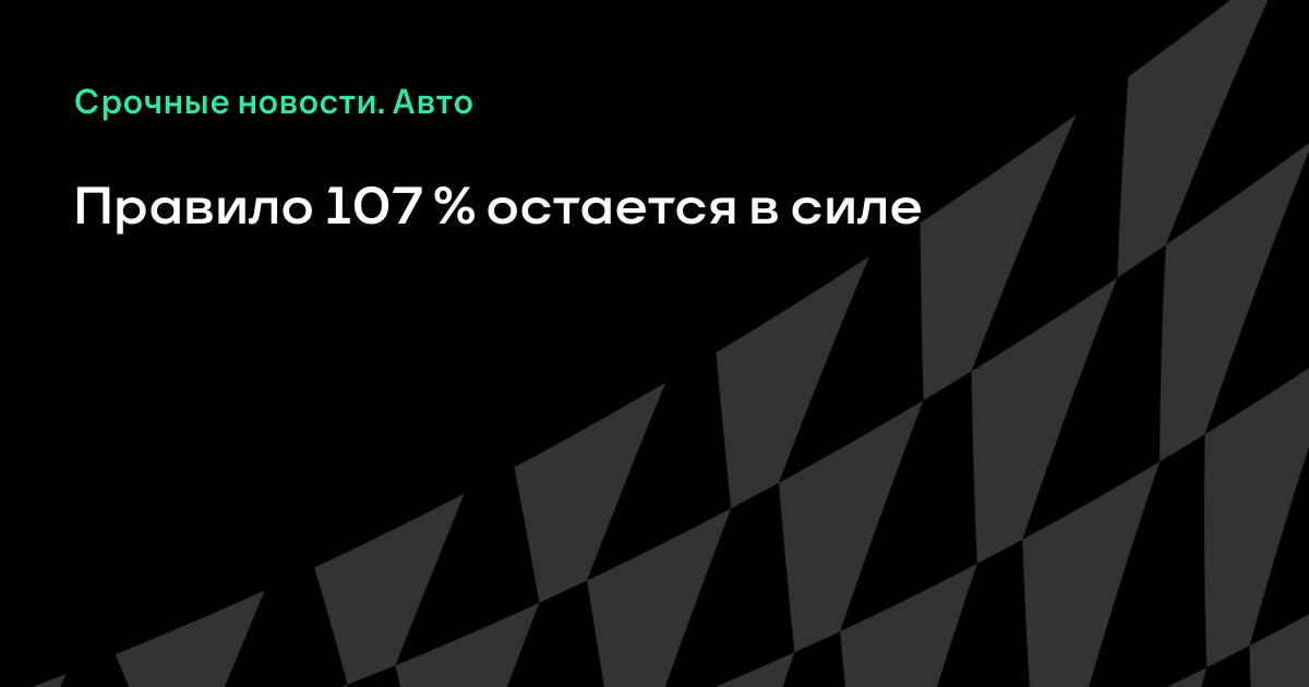 Изменения в формате квалификационных заездов в Формуле-1 не означают, что так называемое правило 107 % прекратит свое существование. Как разъяснил представитель Международной автомобильной федерации (FIA), для попадания на старт гонки пилоту по-прежнему нужно будет показать в квалификации время, укладывающееся в 107 % от результата поул-позиции. Новый порядок проведения квалификационных заездов, по которому у каждого пилота будет возможность пройти лишь один быстрый круг, сделает заезды менее предсказуемыми и, возможно, приведет к увеличению разрывов между пилотами. "По сути правило 107 % сошло на нет, считает шеф команды Minardi Пол Стоддарт, пилот которого Алекс Йонг в 2002 году трижды не проходил квалификацию. Ведь, например, если на быстром круге гонщик вылетел с трассы, то нельзя уже за это лишать его права стартовать в Гран При". В подобных ситуациях стюарды и раньше допускали гонщиков на старт, ссылаясь на исключительные обстоятельства. Однако с 2003 года эта формулировка, по всей видимости, будет применяться гораздо чаще.