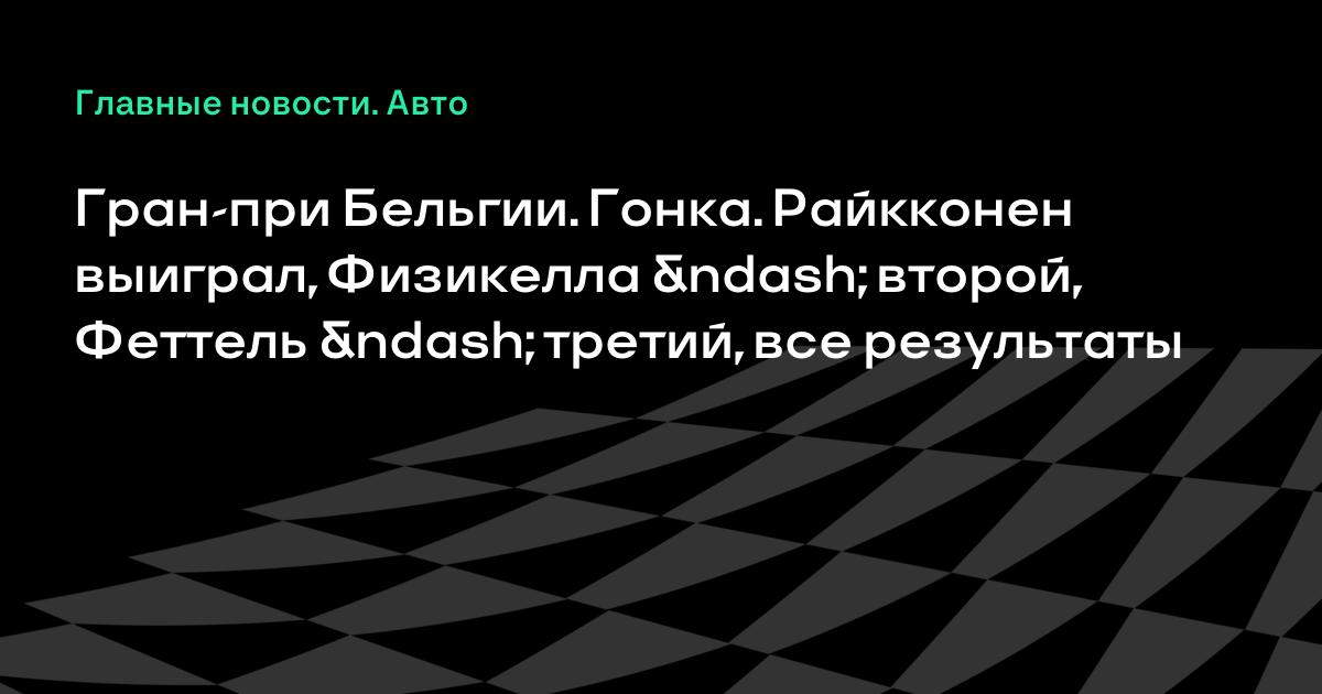 Гран-при Бельгии. Гонка. Райкконен выиграл, Физикелла – второй, Феттель – третий, все результаты