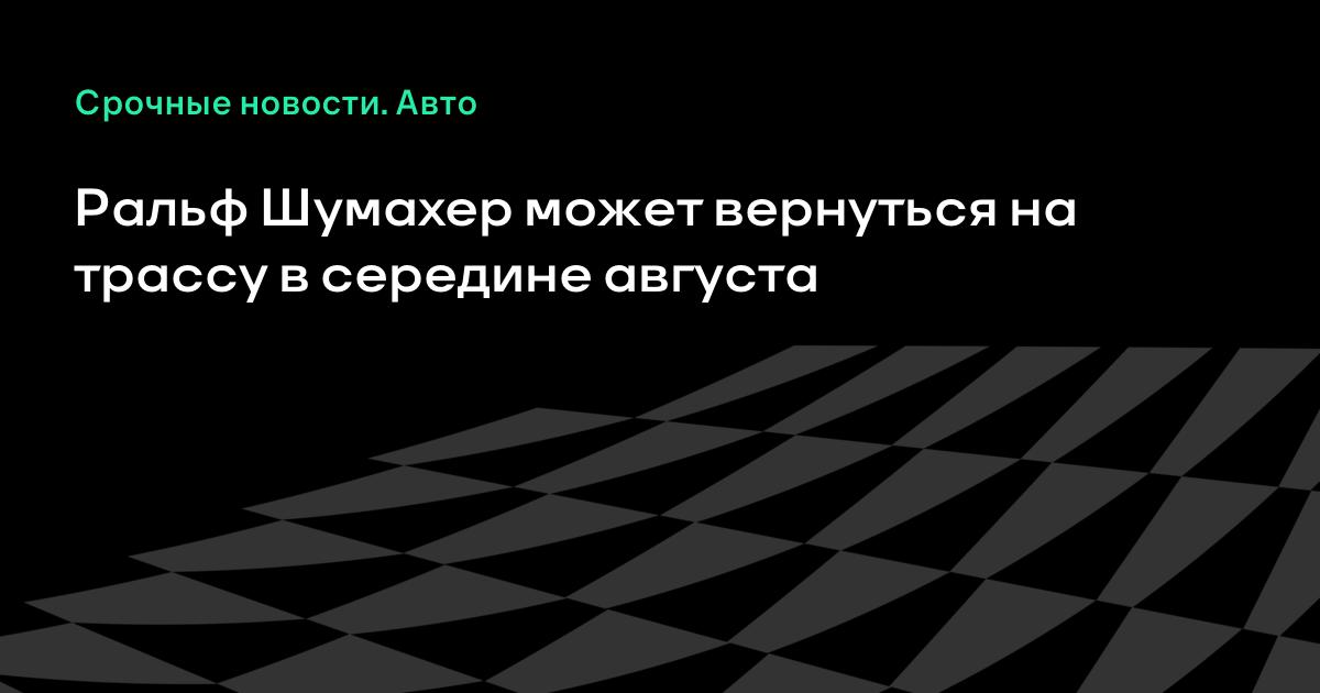 Пилот "Уильямс" Ральф Шумахер может вернуться на трассу же в августе. Об этом сообщил ВВС менеджер команды "Формулы-1" Уилли Вебер."Доктор сказал, что если все пойдет нормально, то он может принять участие на гонках в Венгрии (15 августа), сказал Вебер. Но это произойдет, если Ральф сам почувствует себя полностью здоровым".