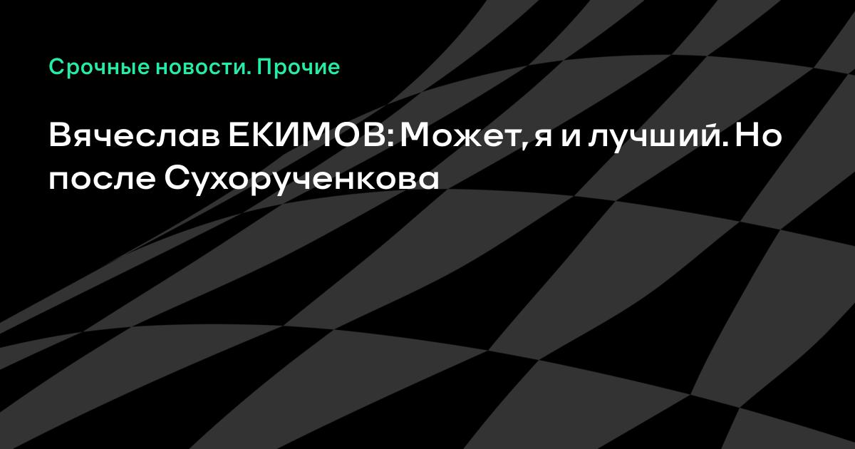 Вячеслав ЕКИМОВ: Может, я и лучший. Но после Сухорученкова