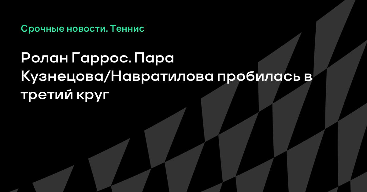 1 июня 2003, 19:37 Ролан Гаррос. Пара Кузнецова/Навратилова пробилась в третий круг Второй круг Кузнецова/Навратилова (Россия/США, 6) - Жидкова/Моригами (Россия/Япония) - 3:6, 7:6 (8:6), 6:4