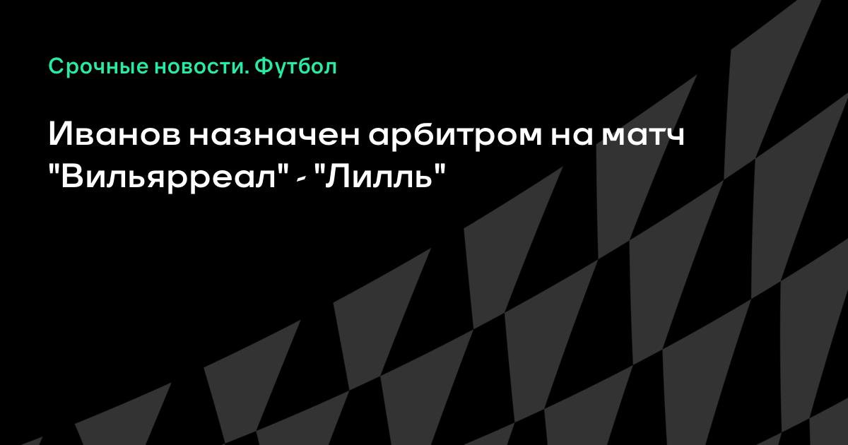 5 декабря 2005, 13:13 Иванов назначен арбитром на матч "Вильярреал" - "Лилль" Валентин Иванов назначен главным арбитром матча Лиги чемпионов "Вильярреаль" "Лилль". Помогать ему будут Евгений Волнин и Николай Голубев. Резервным арбитром назначен Игорь Егоров.