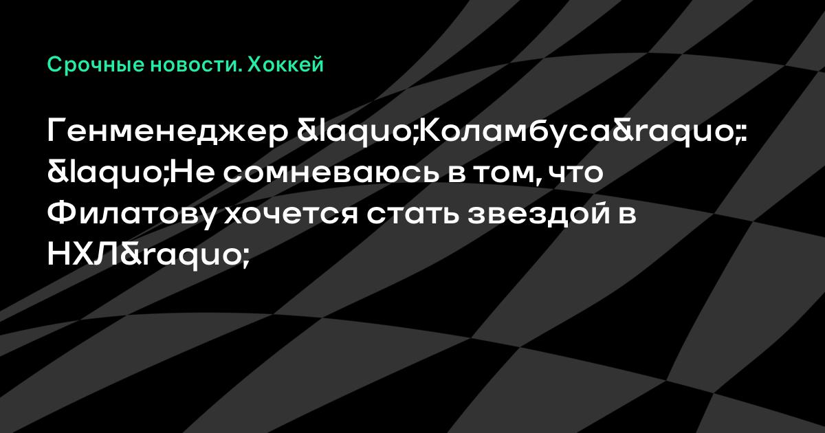 Генменеджер «Коламбуса»: «Не сомневаюсь в том, что Филатову хочется стать звездой в НХЛ»