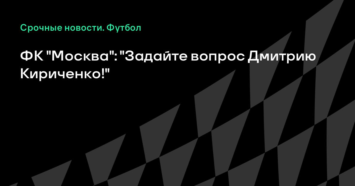 29 сентября 2005, 13:35 ФК "Москва": "Задайте вопрос Дмитрию Кириченко!" На официальном сайте ФК "Москва" сегодня действует конференция, где можно задать вопрос (да и просто оставить пожелания) футболисту команды Дмитрию Кириченко. Задайте вопрос Дмитрию Кириченко!