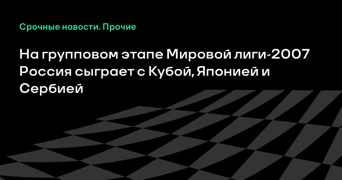 На групповом этапе Мировой лиги-2007 Россия сыграет с Кубой, Японией и Сербией