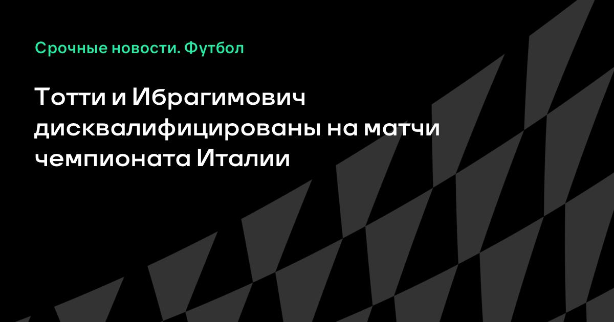 Футболист "Ромы" Франческо Тотти получил пятиматчевую дисквалификацию за красную карточку, которую он получил в матче итальянского чемпионата против "Сиены".Нападающий "Ювентуса" Златан Ибрагимович пропустит три матча своей команды после того, как в матче с "Интером" боднул головой защитника миланцев Синишу Михайловича. Судья матча не заметил нарушения, но видеозапись эпизода послужила доказательством вины игрока туринского клуба.