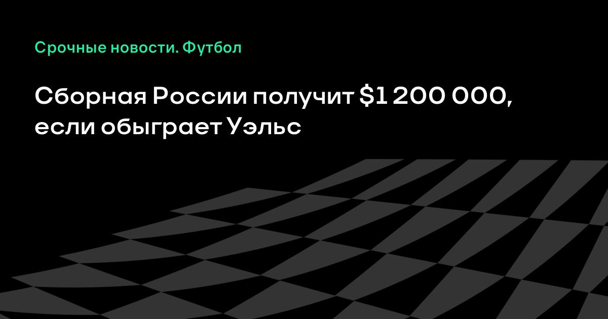 16 октября 2003, 07:11 Cборная России получит $1 200 000, если обыграет Уэльс Как сообщил вчера президент РФС Вячеслав Колосков после заседания исполкома РФС, сборная России получит 1 200 000 долларов, если обыграет Уэльс и попадет в финальную часть Евро-2004.