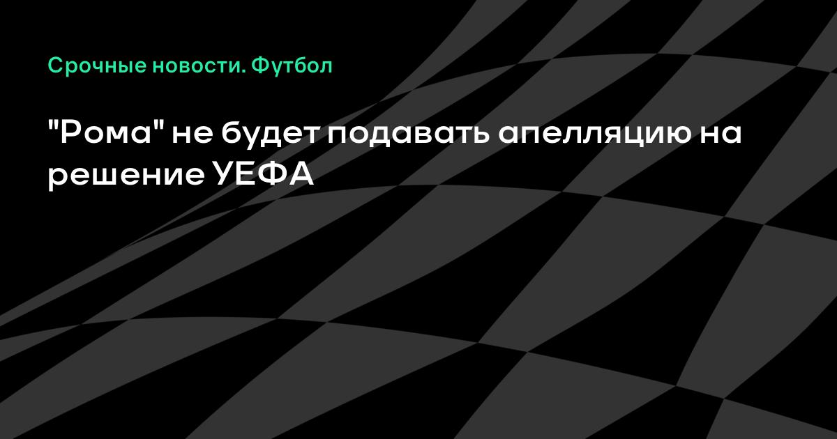 Руководство "Ромы" не будет подавать апелляцию на решение УЕФА засчитать клубу поражение в матче с киевским "Динамо" со счётом 0:3, информирует Reuters. "Руководство "Ромы" с уважением относится к принятому УЕФА решению и не будет подавать апелляцию, в то же время оставляя за собой право защищать интересы клуба и его акционеров", - говорится в заявлении римского клуба.