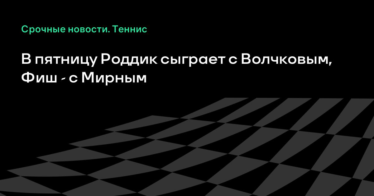 В пятницу Роддик сыграет с Волчковым, Фиш - с Мирным