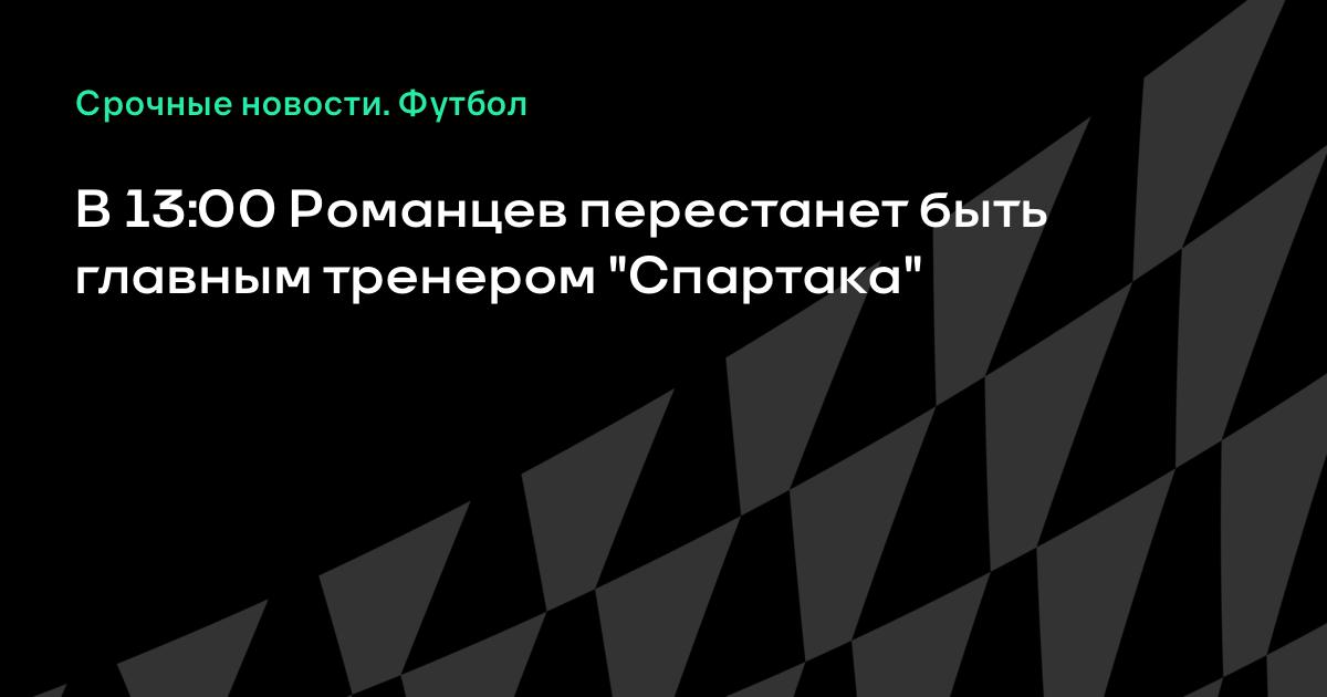 21 июня 2003, 13:00 В 13:00 Романцев перестанет быть главным тренером "Спартака" Сегодня в 13.00 московский "Спартак" соберется на сбор в Тарасовке, и там Романцев представит игрокам нового главного тренера Андрея Чернышова.