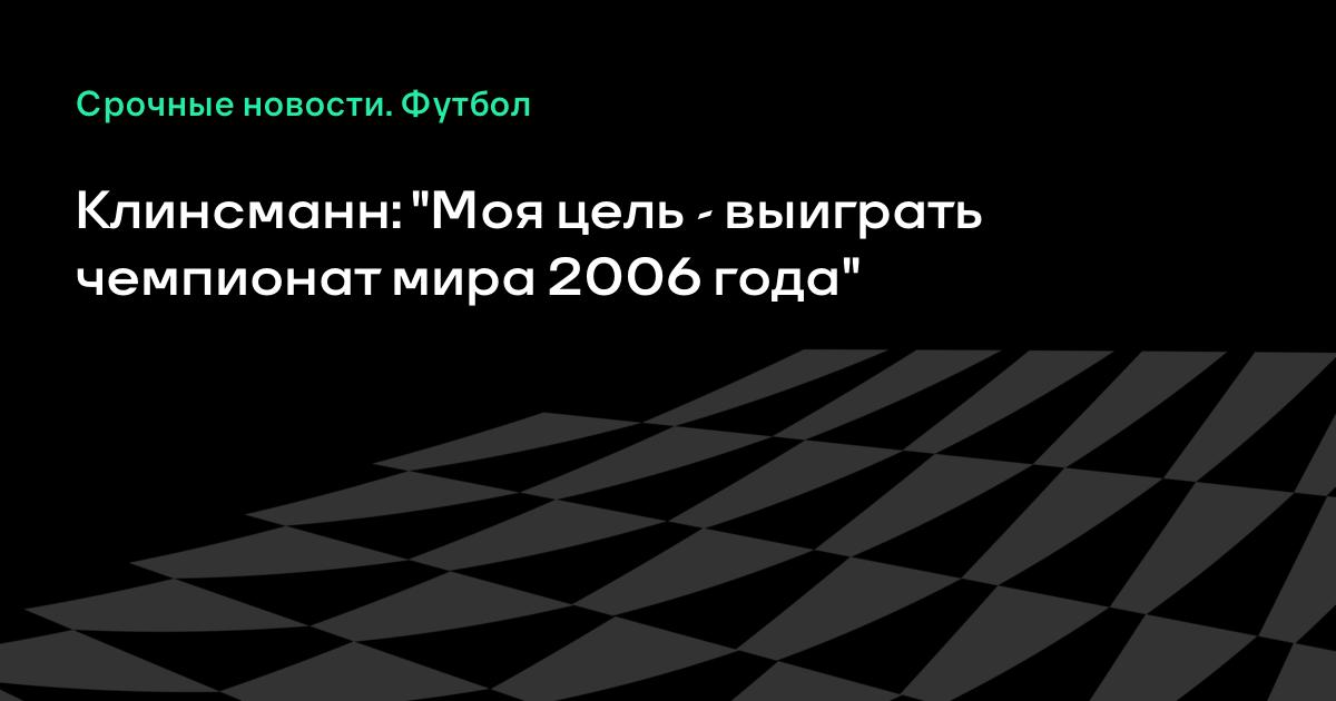 Новый тренер сборной Германии Юрген Клинсманн заявил, что его основная цель - победа в чемпионате мира 2006 года, сообщает АР. "Болельщики надеются, что мы будем чемпионами мира в 2006 году. Что ж, моя цель именно такая. Думаю, у нас есть потенциал. Однако для этого Федерация должна по-другому относится к команде, нежели это было в предыдущие годы", - заявил Клинсманн.