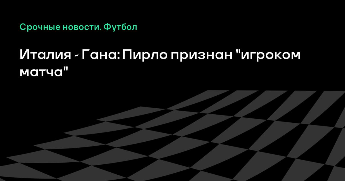 13 июня 2006, 01:01 Италия - Гана: Пирло признан "игроком матча" Полузащитник сборной Италии и "Милана" Андреа Пирло, забивший первый гол в матче Италия-Гана, был признан технической группой ФИФА лучшим игроком матча.