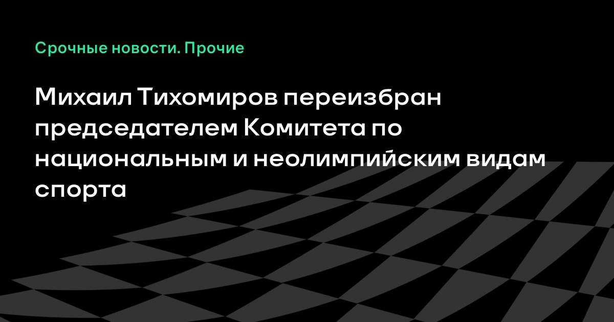 Вице-президент Олимпийского комитета России и президент Всероссийской федерации самбо Михаил Тихомиров переизбран председателем Комитета по национальным и неолимпийским видам спорта. Об этом корреспонденту ИТАР-ТАСС сообщили в пресс-службе ОКР. На общем собрании Комитета, где прошли перевыборы, 53-летний Тихомиров заявил, что "основным направлением нашей деятельности является развитие массовости видов спорта, доступных каждой семье, в частности, бильярда, спортивного ориентирования, танцевального спорта..." По его словам, национальные и неолимпийские виды спорта оказались практически без государственной поддержки, прежде всего финансовой. И развиваются за счет энтузиазма спортсменов и объединяющих их общественных организаций. Возглавляемый Тихомировым Комитет объединяет более 60 федераций неолимпийских видов спорта. "Они могут сделать для улучшения здоровья населения не меньше, чем олимпийские)вск)" - отметил он. Заместителями Тихомирова избраны экс-чемпион мира по шахматам Анатолий Карпов, летчик-космонавт Павел Попович и известный тренер по велоспорту Александр Кузнецов. Михаил Тихомиров - мастер спорта по вольной борьбе, заслуженный тренер России. С 1990 года - президент Всероссийской федерации самбо, с 97-го - Международной федерации любителей самбо.