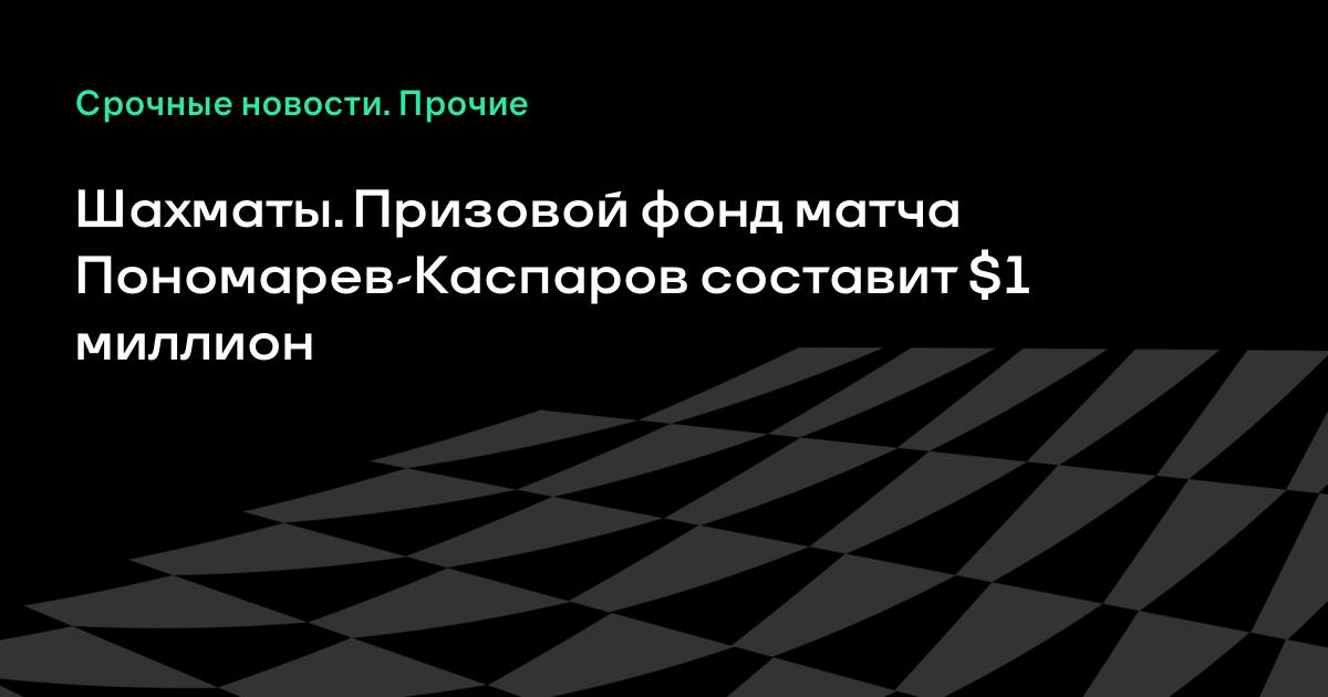 Сегодня после заседания организационного комитета по подготовке и проведению матча за звание чемпиона мира по шахматам между Русланом Пономаревым и Гарри Каспаровым председатель Госкомспорта Украины Николай Костенко сообщил, что его призовой фонд составит $1 млн, и еще $700 тыс пойдут на организационные расходы. На подготовку Пономарева Госкомспорт выделит 23 тысячи долларов.В заседании приняли участие глава оргкомитета - премьер- министр Украины Виктор Янукович и президент Калмыкии, глава Всемирной федерации шахмат Кирсан Илюмжинов. Янукович отметил, что шахматы являются самым высокоинтеллектуальным видом спорта, в котором лидируют Украина и Россия. При этом Янукович отметил, что матч между Пономаревым и Каспаровым будет совпадать по времени с проведением в Ялте саммита СНГ; поэтому "мы должны в сжатые сроки сделать все, чтобы матч прошел на высоком уровне".