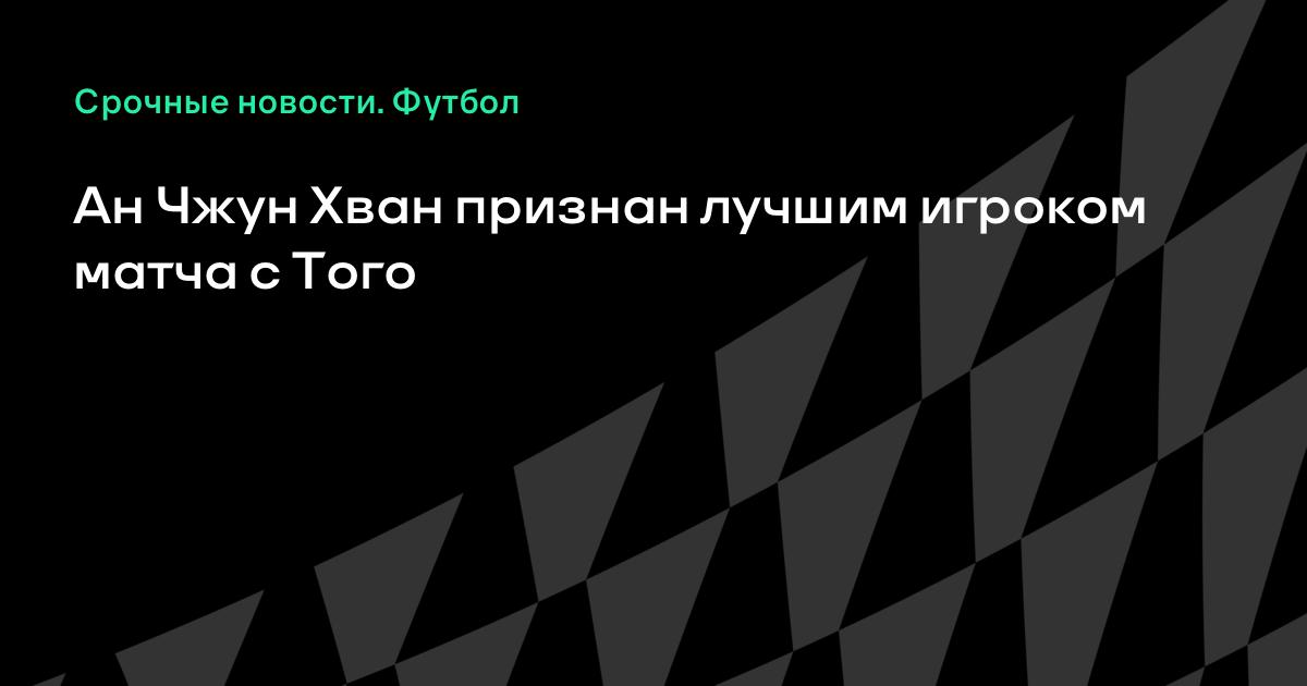 13 июня 2006, 21:57 Ан Чжун Хван признан лучшим игроком матча с Того Нападающий сборной Кореи Ан Чжун Хван техническим комитетом ФИФА признан лучшим игроком матча с командой Того, который закончился победой корейцев со счетом 2:1.