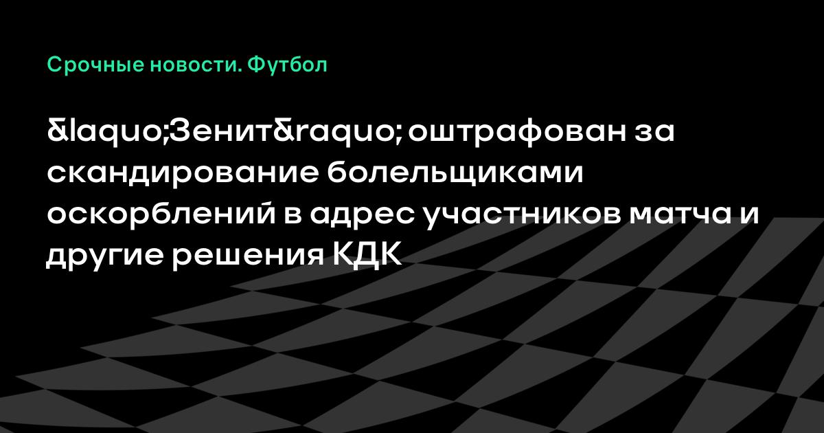 «Зенит» оштрафован за скандирование болельщиками оскорблений в адрес участников матча и другие решения КДК