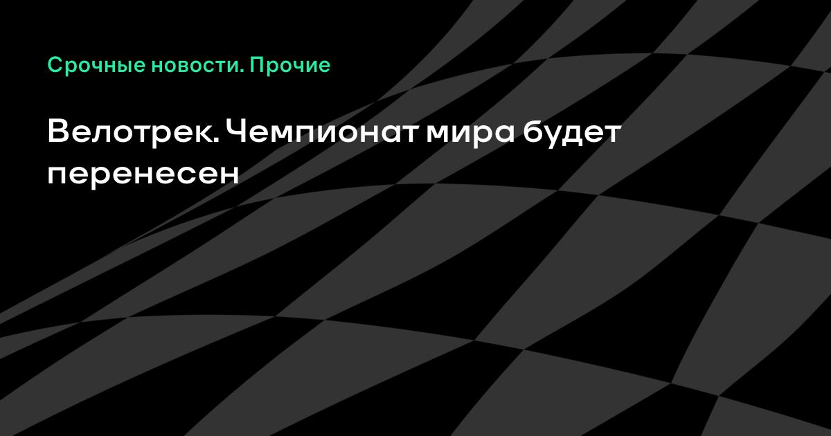 Чемпионат мира по велотреку, который должен был состояться в Китае, будет перенесен в другую страну, сообщает АР. Причина традиционна угроза атипичной пневмонии. Изменены будут и сроки первенства. Первоначально предполагалось, что чемпионат пройдет с 30 июля по 3 августа, теперь принято решение о переносе его на более поздний срок. Город, в котором пройдет первенство, станет известен на следующей неделе.