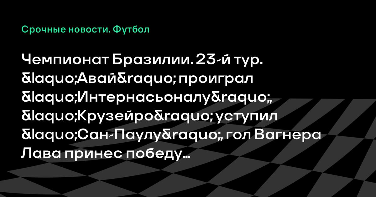 Чемпионат Бразилии. 23-й тур. «Авай» проиграл «Интернасьоналу», «Крузейро» уступил «Сан-Паулу», гол Вагнера Лава принес победу «Палмейрасу» и другие результаты
