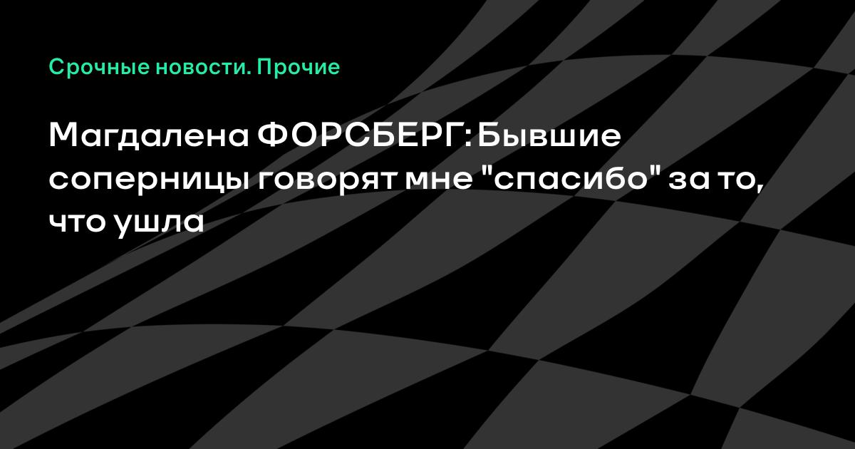 Магдалена ФОРСБЕРГ: Бывшие соперницы говорят мне "спасибо" за то, что ушла