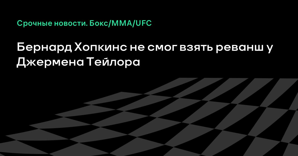 В Лас-Вегасе завершился вечер профессионального бокса, в главном поединке которого бывший абсолютный чемпион мира в полусреднем весе Бернард Хопкинс не сумел взять реванш у Джермена Тейлора, отобравшего у него чемпионские титулы несколько месяцев назад. Этот поединок, как и первый, проходил в напряженной и не слишком зрелищной борьбе, в которой Тейлор выглядел немного получше в начальных раундах, а Хопкинс во второй половине боя. По окончании боя все судьи единогласно отдали победу Тейлору со счетом 115-113, однако данный результат наверняка вызовет протесты многих сторонников Хопкинса.