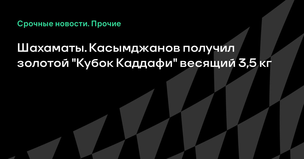 "Кубок Каддафи", который ливийский лидер Муамар Каддафи учредил специально для победителя чемпионата мира по шахматам, отлит из золота и весит три с половиной килограмма. Об этом на пресс-конференции в пятницу сообщил президент Международной шахматной федерации (ФИДЕ) Кирсан Илюмжинов. Чемпионат мира по шахматам среди мужчин проходил в ливийской столице Триполи с 18 июня по 12 июля. Победителем соревнований стал узбекский шахматист Рустам Касымджанов. Как сообщил Илюмжинов, помимо драгоценного "Кубка Каддафи", 17-му чемпиону мира по шахматам были вручены призовые в размере $100 тысяч, информирует РИА "Новости".