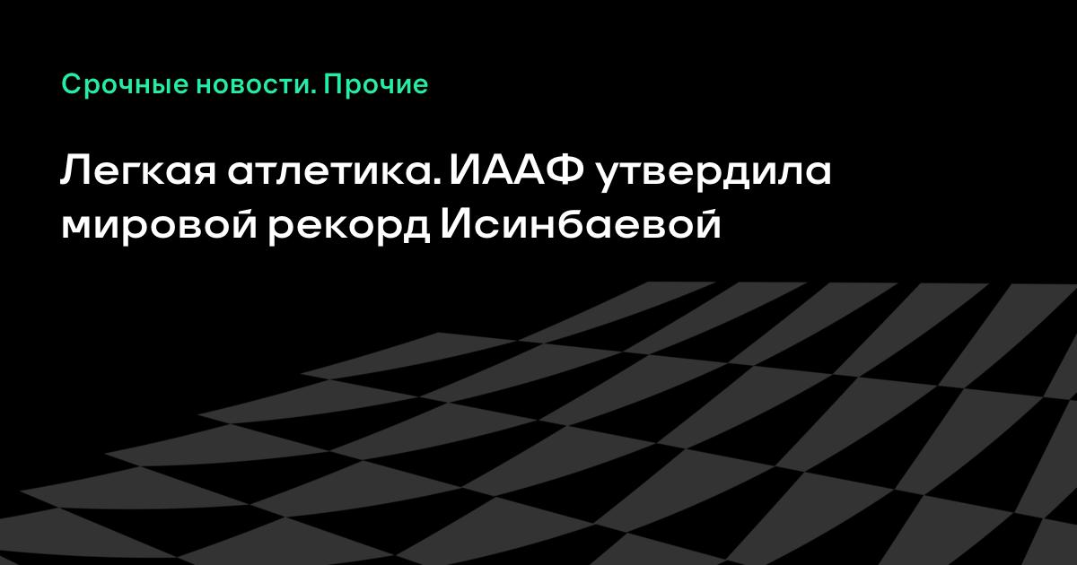 25 ноября 2004, 09:16 Легкая атлетика. ИААФ утвердила мировой рекорд Исинбаевой Международная федерация легкой атлетики (ИААФ) официально признала мировой рекорд российской прыгуньи с шестом Елены Исинбаевой, установленный ею в Брюсселе третьего сентября.
