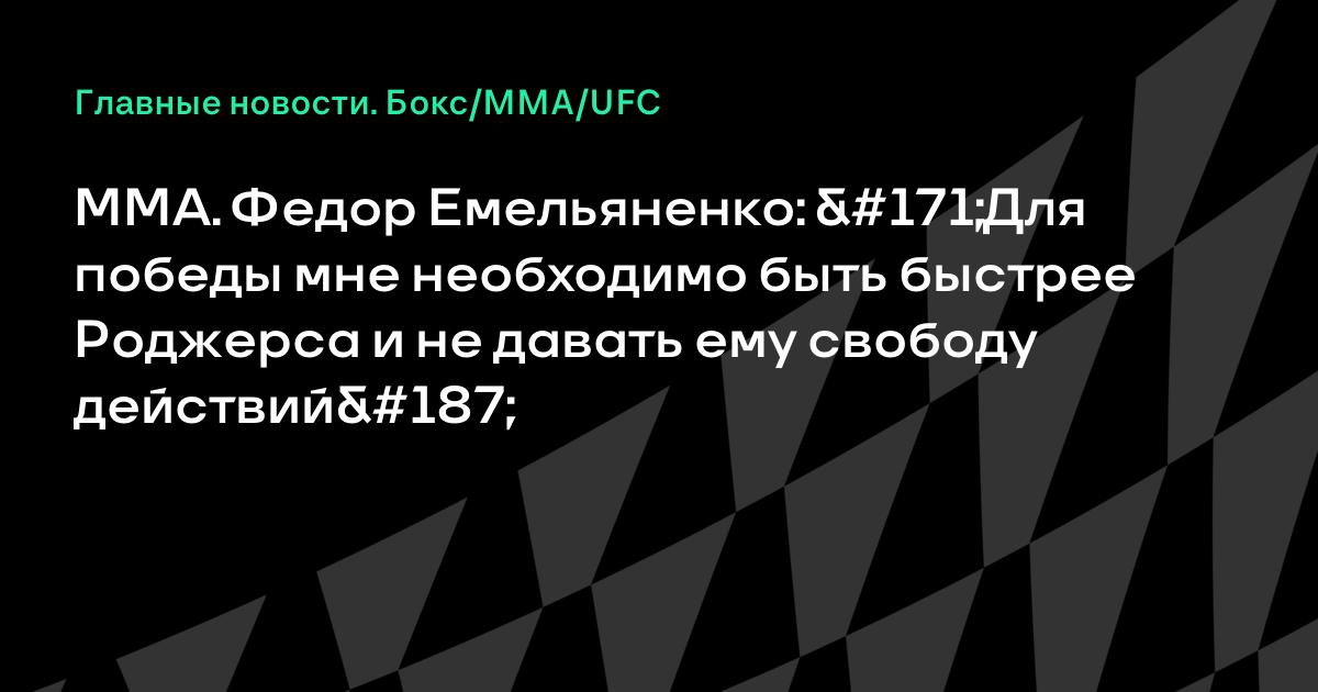MMA. Федор Емельяненко: «Для победы мне необходимо быть быстрее Роджерса и не давать ему свободу действий»