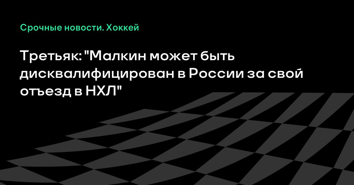 Президент Федерации хоккея России (ФХР) Владислав Третьяк заявил, что Евгений Малкин может быть дисквалифицирован в России за свой отъезд из расположения магнитогорского "Металлурга" в Национальную хоккейную лигу (НХЛ)."Есть регламент, согласно которому за такие нарушения хоккеист может быть дисквалифицирован и лишен права играть в российском чемпионате", - заявил Третьяк в среду в интервью журналистам. "На сборную эта дисквалификация не распространяется", - уточнил глава ФХР.