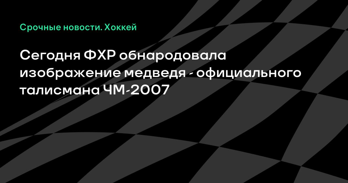 В четверг ФХР обнародовала изображение официального символа ЧМ по хоккею, который пройдет в Москве и Мытищах в следующем году. Им, как уже сообщал "СПОРТ сегодня", стал медведь. Сегодня же был объявлен конкурс с предложением придумать имя талисману мирового форума-2007. Победитель конкурса, как сообщает официальный сайт ФХР, получит билет на финальный матч турнира, а также майку с автографами игроков сборной России по хоккею.