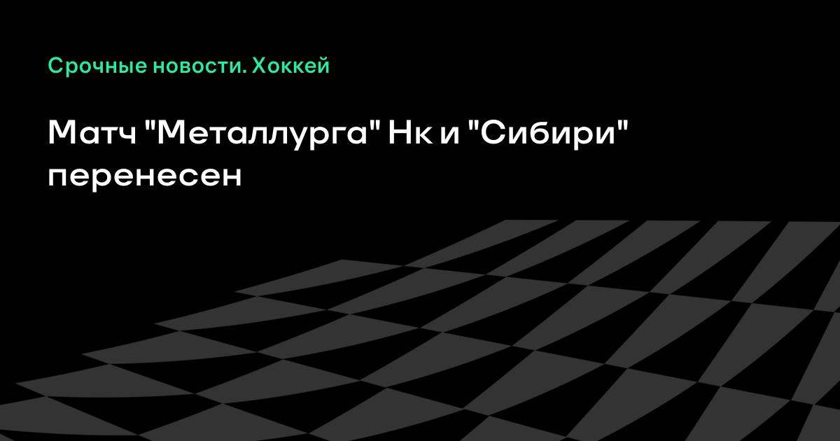 Матч чемпионата России по хоккею между новокузнецким "Металлургом" и новосибирской "Сибирью" перенесен, сообщает управление по проведению соревнований ФХР.