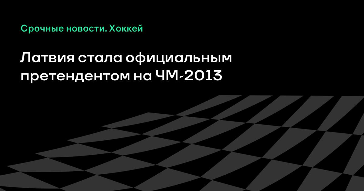 Латвия стала официальным претендентом на чемпионат мира 2013 года, сообщает sportsnews.lv. Конкурентами Латвии в борьбе за право проведения турнира являются Чехия, Венгрия и Швеция. Если латвийцам удастся заполучить ЧМ-2013, его матчи пройдут на «Арене Рига» и в рижском спортивном манеже, который будет перестроен под ледовый холл.