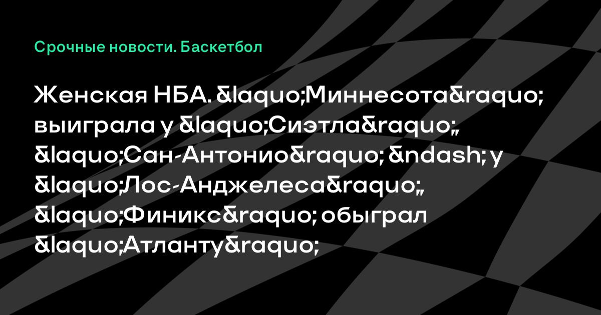 Женская НБА. «Миннесота» выиграла у «Сиэтла», «Сан-Антонио» – у «Лос-Анджелеса», «Финикс» обыграл «Атланту»