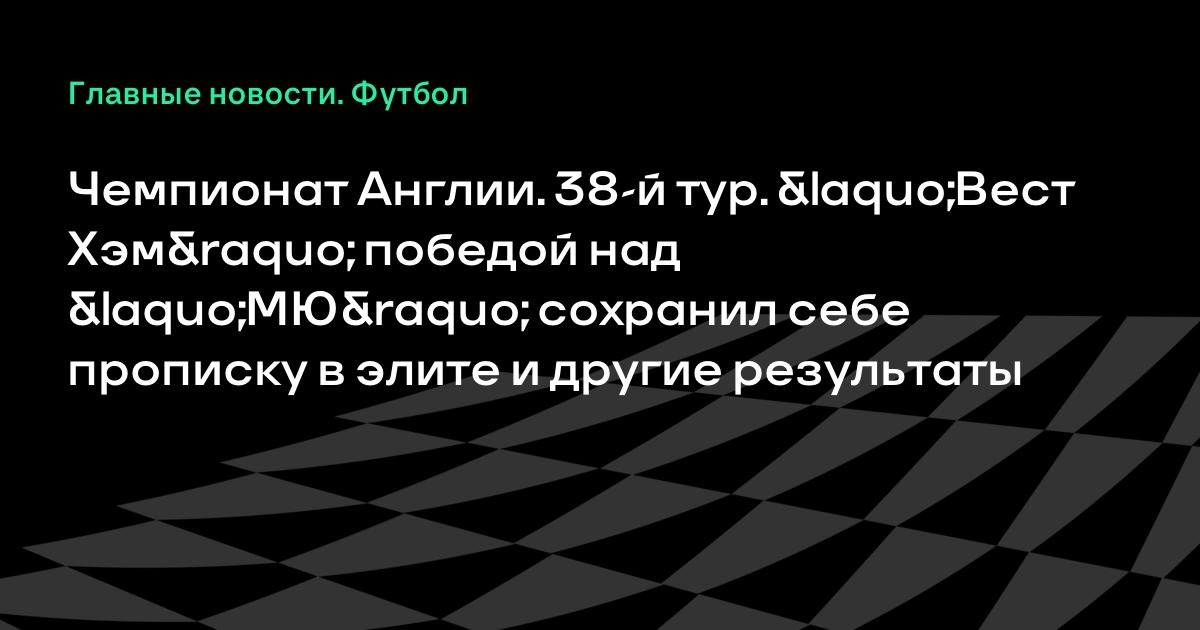 Чемпионат Англии. 38-й тур. «Вест Хэм» победой над «МЮ» сохранил себе прописку в элите и другие результаты