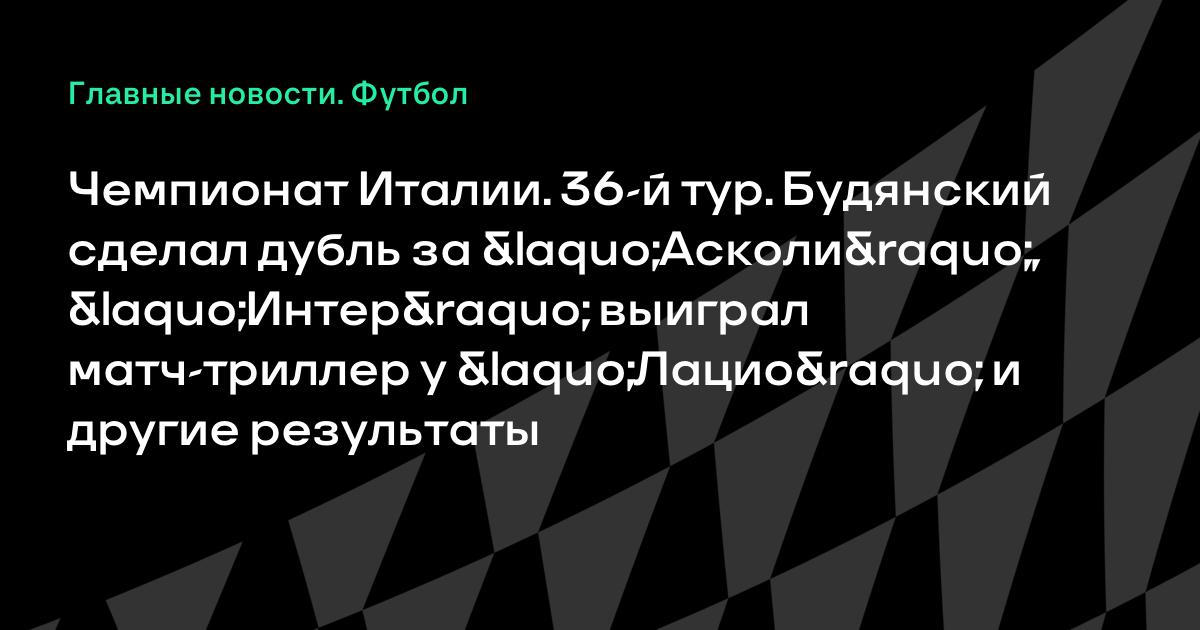Чемпионат Италии. 36-й тур. Будянский сделал дубль за «Асколи», «Интер» выиграл матч-триллер у «Лацио» и другие результаты
