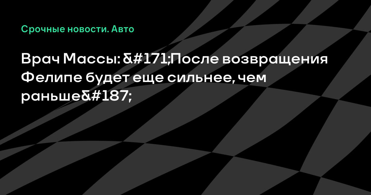 «После возвращения Фелипе будет еще сильнее, чем раньше. Он быстро восстанавливается и скоро начнет физические тренировки, направленные на возвращение», цитирует Альтмана Motorsport.