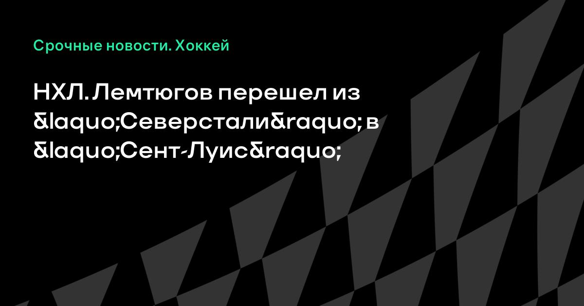 21-летний нападающий череповецкой «Северстали» Николай Лемтюгов подписал контракт с клубом НХЛ «Сент-Луис». Об этом сообщает издание St. Louis Post-Dispatch. Финансовые условия сделки и срок, на который заключен контракт, не сообщаются. В прошедшем сезоне Лемтюгов в составе «Северстали» сыграл 57 матчей, забросил 11 шайб и сделал 9 передач.